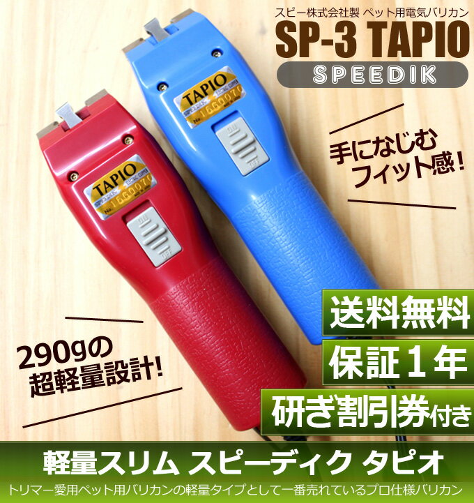 送料無料 スピーディク タピオ 本体のみ刃なし(スピーディク タピオ)【犬用バリカン ペット 業務用 プロ用 清水電機工業株式会社 スピーディック 軽量】 商品詳細 スピー株式会社(清水電機工業株式会社)製ペット用電気バリカン タピオ(TAPIO/SP-3) 本商品は本体のみ刃なしです。
