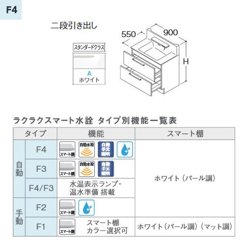 ※ラクラクスマート水栓(F1:マット調)と二段引き出しタイプの組み合わせは、レールの仕様が異なります。
