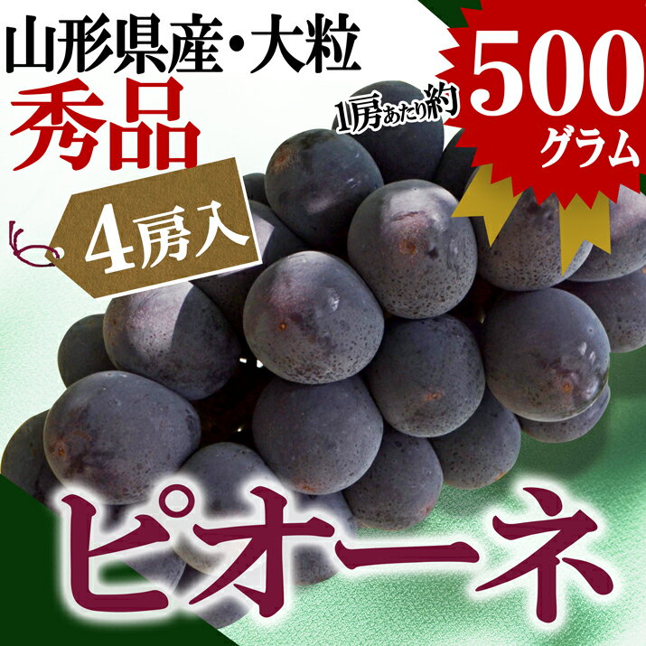 【台風接近・緊急セール】山形県産 お徳用 大粒ピオーネ 4房 約2kg (1房約500g) 産地直送 同梱不可 2018年 9月下旬発送 送料無料 果物 訳あり