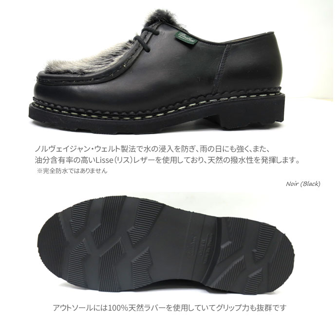 モデル Paraboot MICHAEL MINK ( ミカエル ミンク ) レディースモデル カラー NOIR(ブラック)【177282】 アッパー LISS LETHER(牛革) アウトソール 自社製ラバーソール「Griff2 SOLE」 製法 ノルヴェイジャン・ウェルト製法 サイズ UK.3 (22.5cm)〜UK.5 (24.5cm) 生産国 Made in France ご注意点 ※天然の素材を使用しているため、一足ずつ色合い・模様が異なります。